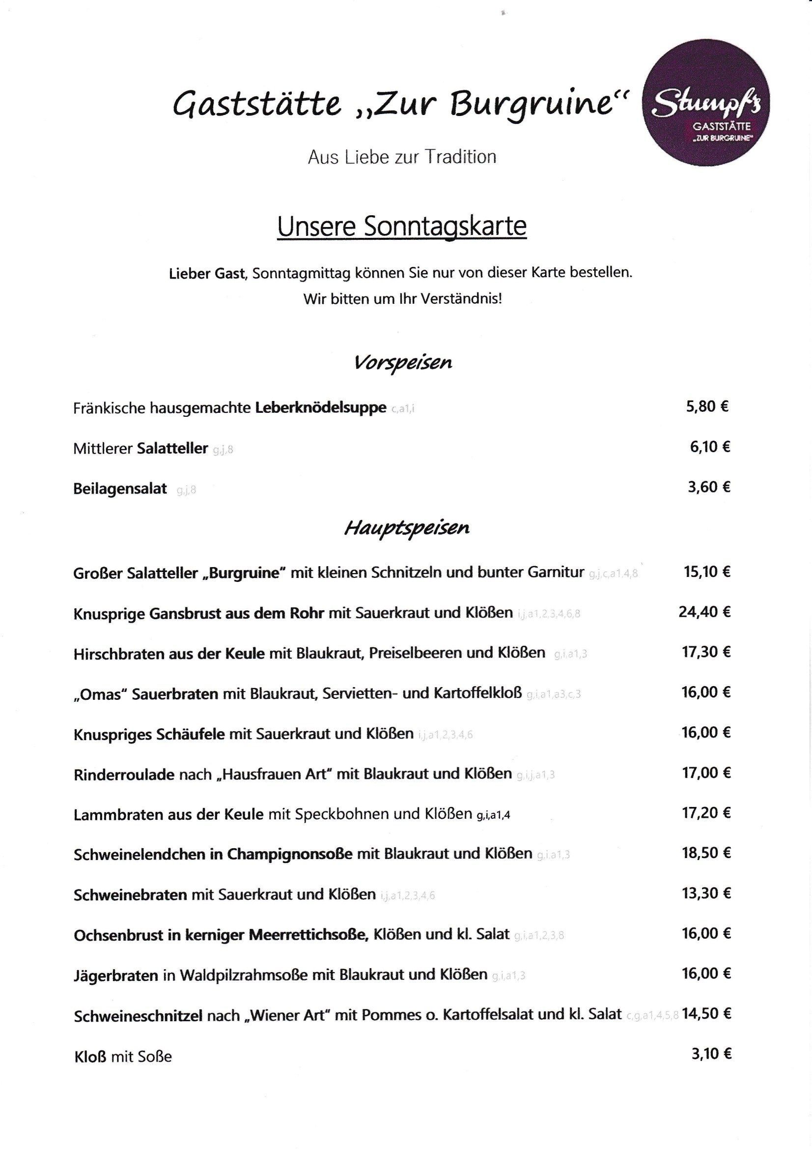 Unsere Speisekarte bietet Ihnen eine abwechslungsreiche Auswahl fränkischer Klassiker und saisonaler Highlights.